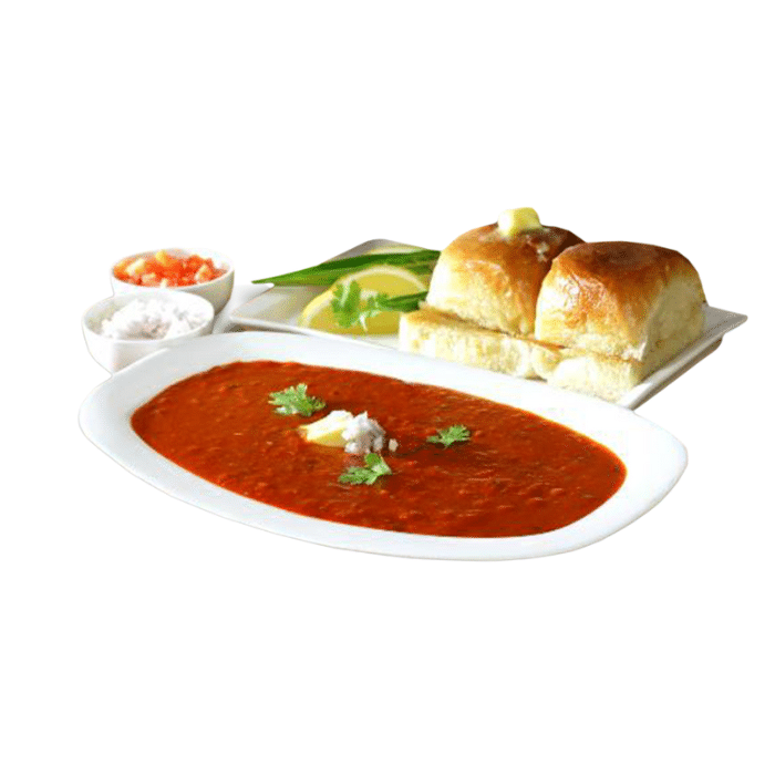 Pav bhaji is a spiced mixture of mashed vegetables in a thick gravy served with bread. Vegetables in the curry may commonly include potatoes, onions, carrots, chillies, peas, bell peppers and tomatoes. Street sellers usually cook the curry on a flat griddle (tava) and serve the dish hot.